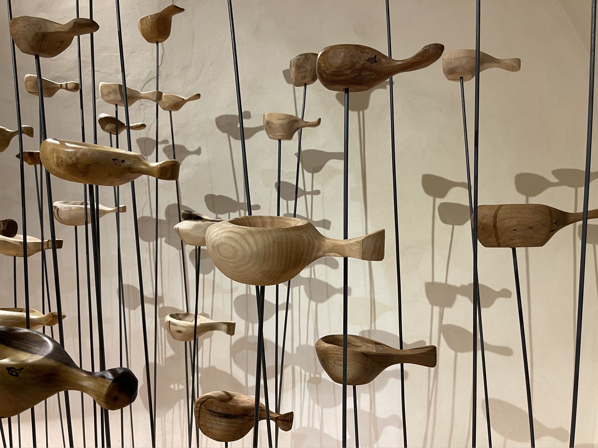 Light here is both physical and symbolic. It filters through perforated surfaces, casting lace-like shadows; it gleams on smooth, polished curves; it reveals contrasts between heartwood and sapwood. At the same time, it is the light of renewal – the artist’s act of reviving what was discarded or forgotten, of placing old wood into new contexts, and of opening space for new stories to be told.
